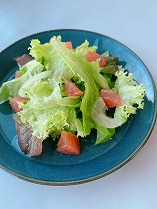 この時期、このメニューにはフルーツサラダがよく合います。砂糖なしのシンプルドレッシングで