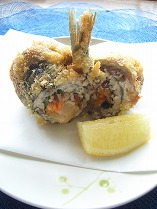 三枚におろした秋刀魚の半身に、梅しそチーズを入れて青魚にはぴったりの味付け